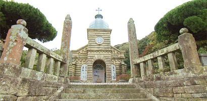 1910年から7年の歳月をかけて完成した国指定の重要文化財。全国的にも珍しい石造りの教会で山あいにひっそりとたたずむ。信徒たちが島で切り出した石を積み上げて造った。