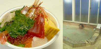 丼御飯に魚介類や総菜などをのせてオリジナル丼を作る事が出来るのっけ丼が人気。