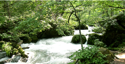 十和田湖畔の子ノ口から焼山にかけて約14キロメートル続いている。透明度の高い水と多様な植物が特徴。阿修羅の流れや雲井の滝など様々な景観を鑑賞することができる。