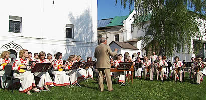 指揮者Евгений Агеевエフゲニ・アゲエフさんを中心に約40名で活動を行う、ヤロスラヴリ市立のロシア民謡楽団。全ロシアの民謡団音楽会でも何度も優勝した経験をもち、1999年に来日したこともある。世界中で活躍する民謡楽団。