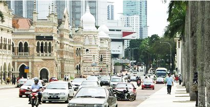 クアラルンプール一番の目抜き通り。たくさんのショッピングセンターが立ち並び、昼夜問わず買い物目当ての人たちで溢れ返っている。