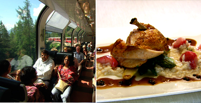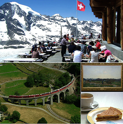 サン・モリッツ駅から国境を越えてイタリアのティラーノまでを結ぶ鉄道。ルートの大半が世界遺産に認定されている美観地区で、車窓から有名なループ橋、山上湖、氷河などを望むことができる。