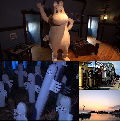1993年オープン、ナーンタリ海沿いからつながる橋を渡ったところにある、夏季限定でオープンするテーマパーク。島全体がムーミンの世界で、中にはムーミン一家の家やムーミンパパの船など、物語に登場する場所やもの、キャラクターがそのまま再現されており、まるでムーミン谷にやってきたかのような気分で楽しめる。