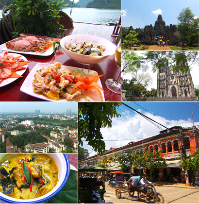 首都ハノイから車でおよそ3時間、ベトナム北部に位置する、神秘の海、ハロン湾広大な湾内に浮かぶ奇岩の数はおよそ3000。十数万年の時を経てできたこの景観は自然の驚異と称えられ、1994年、世界遺産に登録されました。1000種類以上の魚介類が採れる豊かな海でも有名。