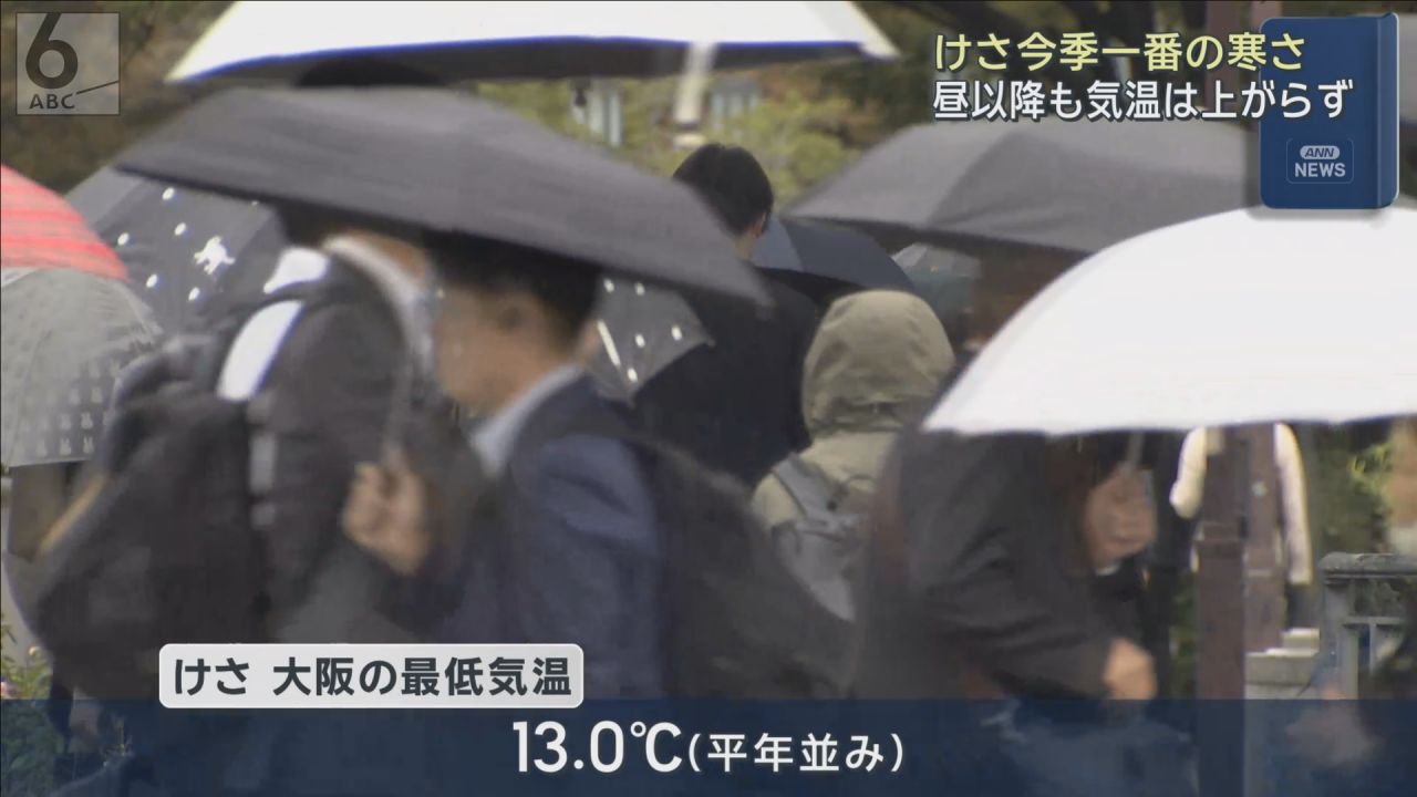「きのうまで半袖だったのに」 近畿で冷たい雨 大阪は12月上旬並みの寒さ 今秋一番の冷え込み 10/22 13:08