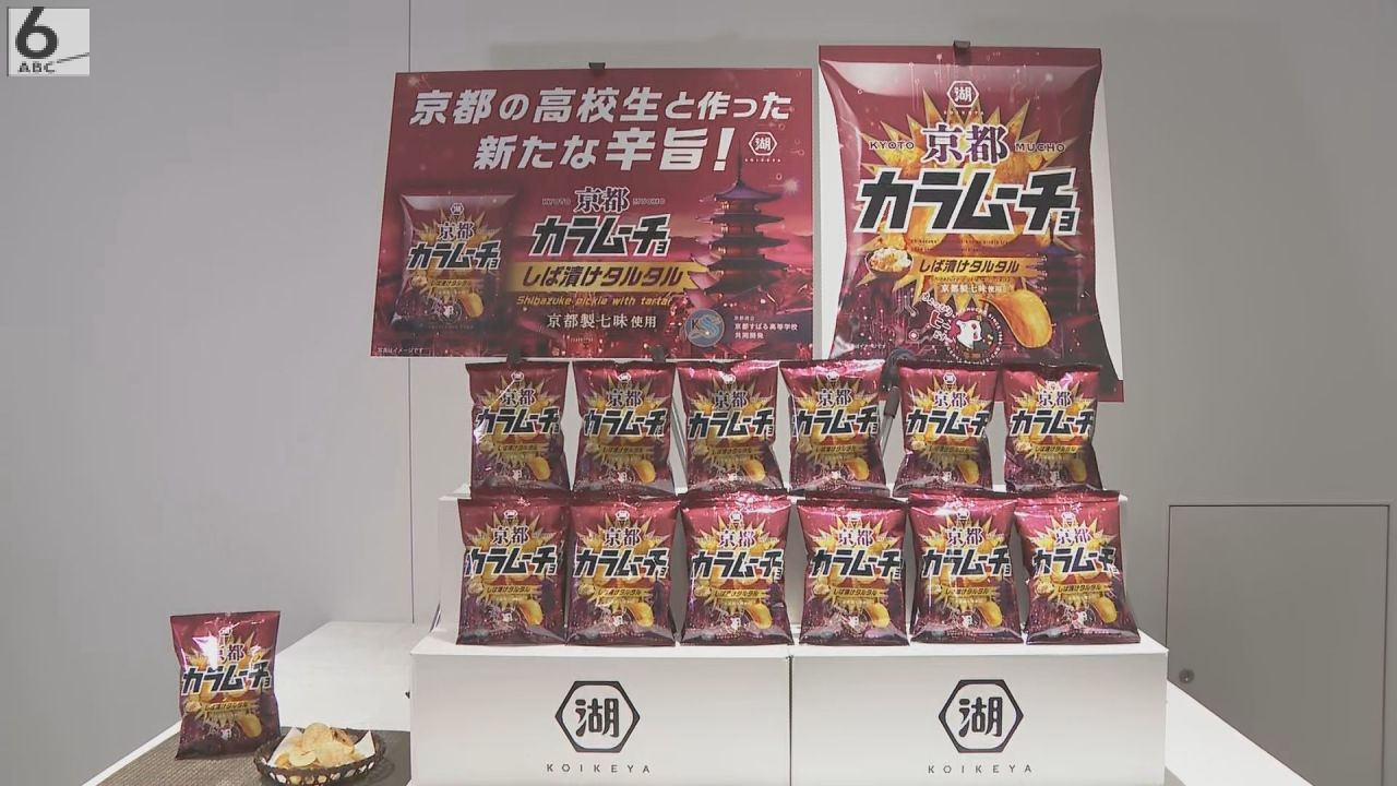生徒らは去年5月から、「京都府の食」をテーマにした商品のアイディアを出し合い、湖池屋の担当者のアドバイスをもらいながら開発を進めてきました。