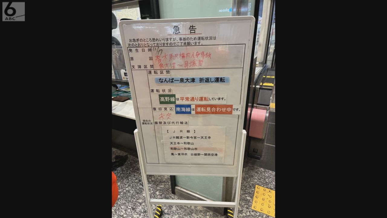 南海電鉄によりますと、17日午前9時20分ごろ、大阪府岸和田市の南海本線・春木駅で人と列車が接触し、1人が死亡しました。
