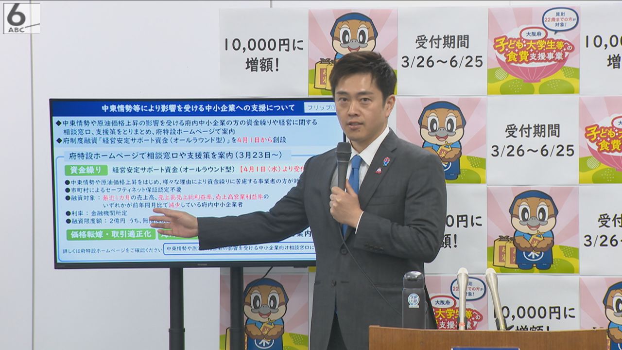 大阪府は25日、中東情勢などに影響を受ける府内の中小企業の支援として、府の制度融資の対象枠を広げると発表しました。
