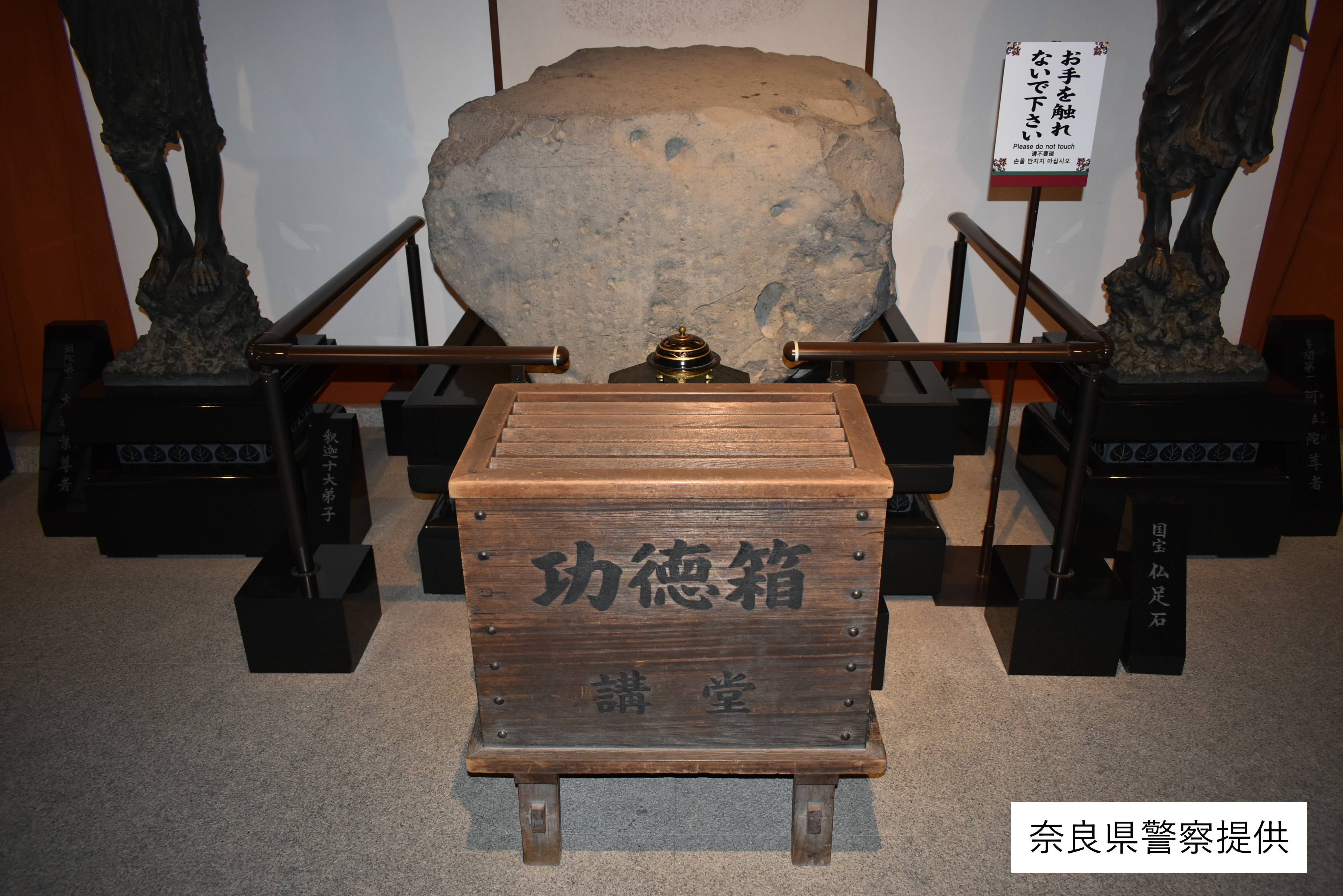 12日午後4時ごろ、奈良市西ノ京町の薬師寺で職員が大講堂内に置かれている国宝・仏足石に液体がかけられたような痕があるのを発見しました。
