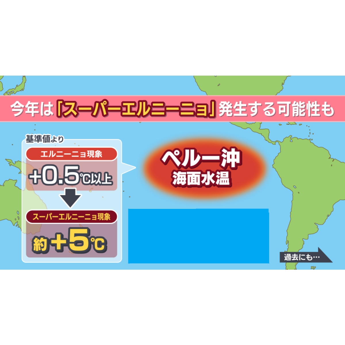 スーパーエルニーニョは2023年にも発生していて、世界の平均気温が観測史上最高を記録しました。