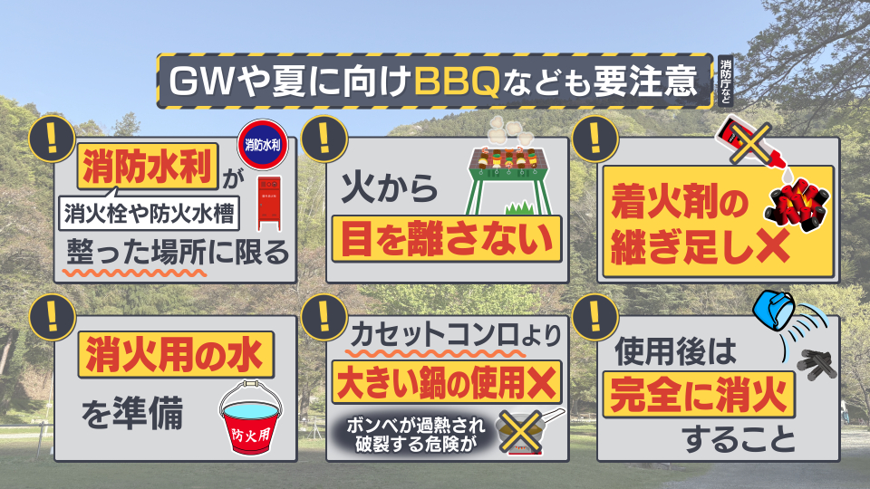 GWや夏に向けて、BBQなどの注意点をまとめました。