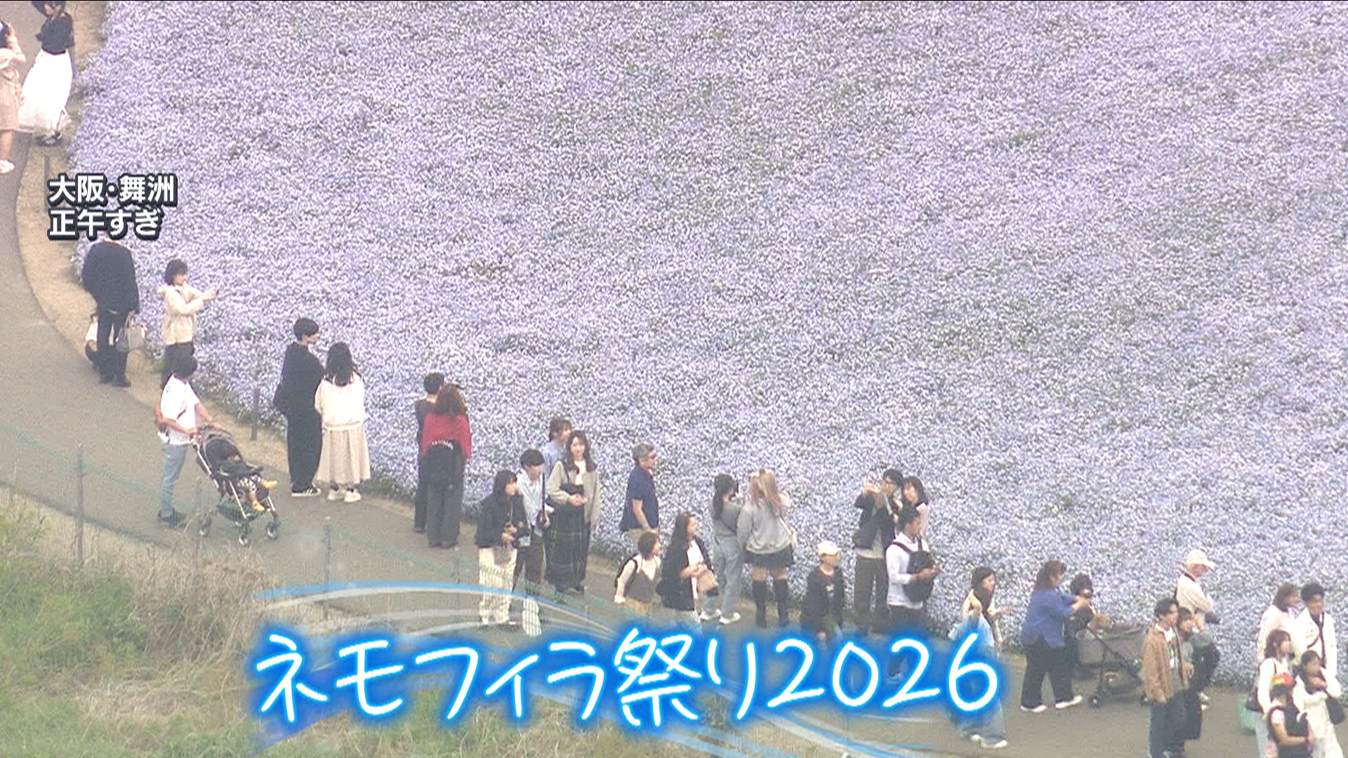 ネモフィラ祭りが開催されている大阪・舞洲では、海沿いに淡いブルーの絨毯が広がっています。多くの行楽客が約100万株のネモフィラを楽しんでいました。