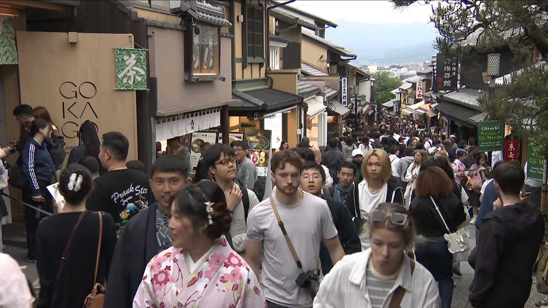 「午後1時すぎです。清水寺へ向かう道路は、29日も多くの観光客で賑わっています」