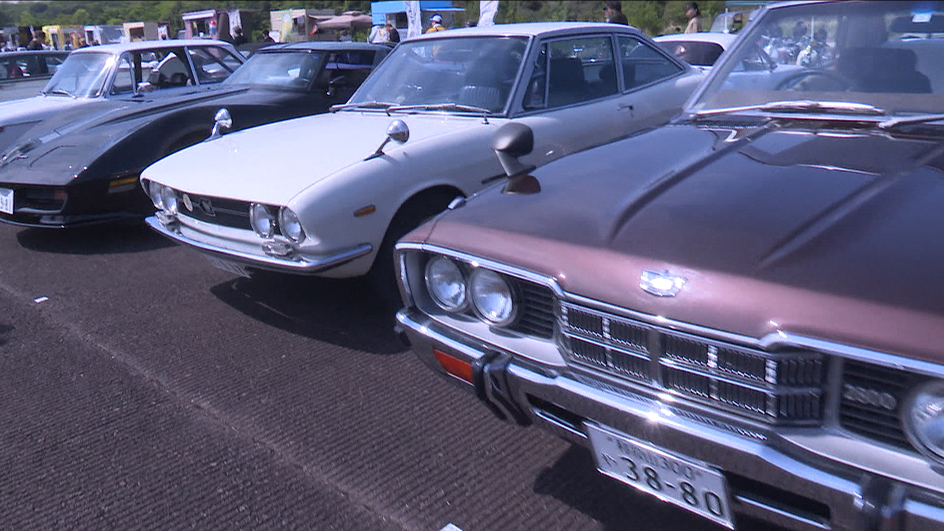 旧南紀白浜空港の滑走路に、ずらっと並んだ昭和のレトロカー。