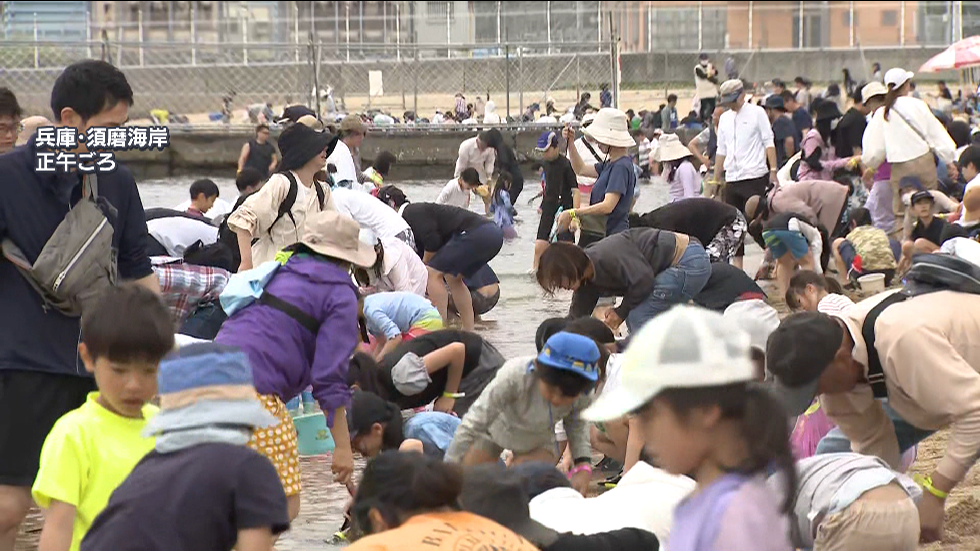 兵庫の須磨海岸は、海水浴には早い時期ですが、潮干狩りの客で賑わっていました。